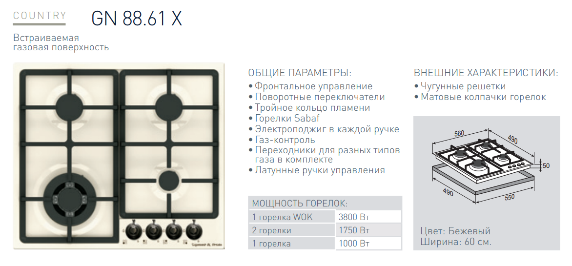 Газовая варочная панель Zigmund-Shtain (Зигмунд-Штайн) GN 88.61 X + ВИДЕО О ТОВАРЕ