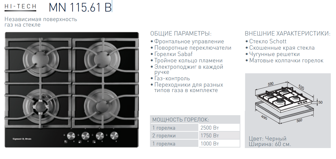 Газовая варочная панель Zigmund-Shtain (Зигмунд-Штайн) MN 115.61 B + ВИДЕО О ТОВАРЕ