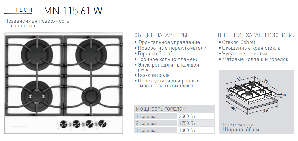 Газовая варочная панель Zigmund-Shtain (Зигмунд-Штайн) MN 115.61 W + ВИДЕО О ТОВАРЕ
