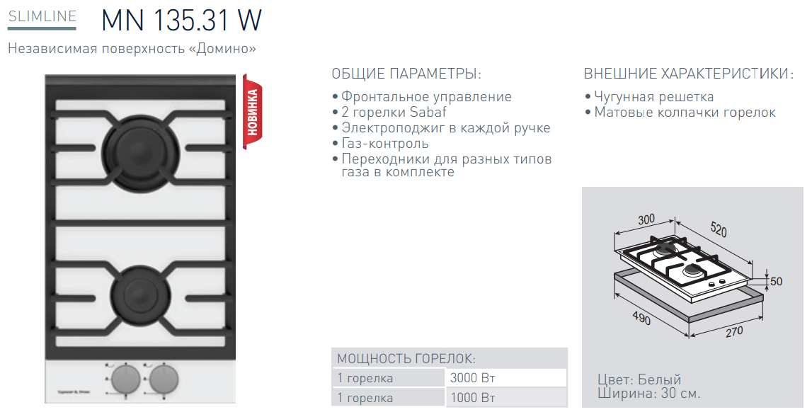 Газовая варочная панель Zigmund-Shtain (Зигмунд-Штайн) MN 135.31 W