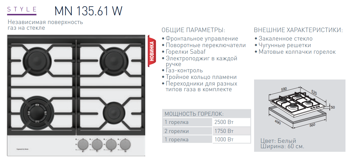 Газовая варочная панель Zigmund-Shtain (Зигмунд-Штайн) MN 135.61 W