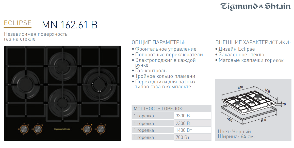 Газовая варочная панель Zigmund-Shtain (Зигмунд-Штайн) MN 162.61 B