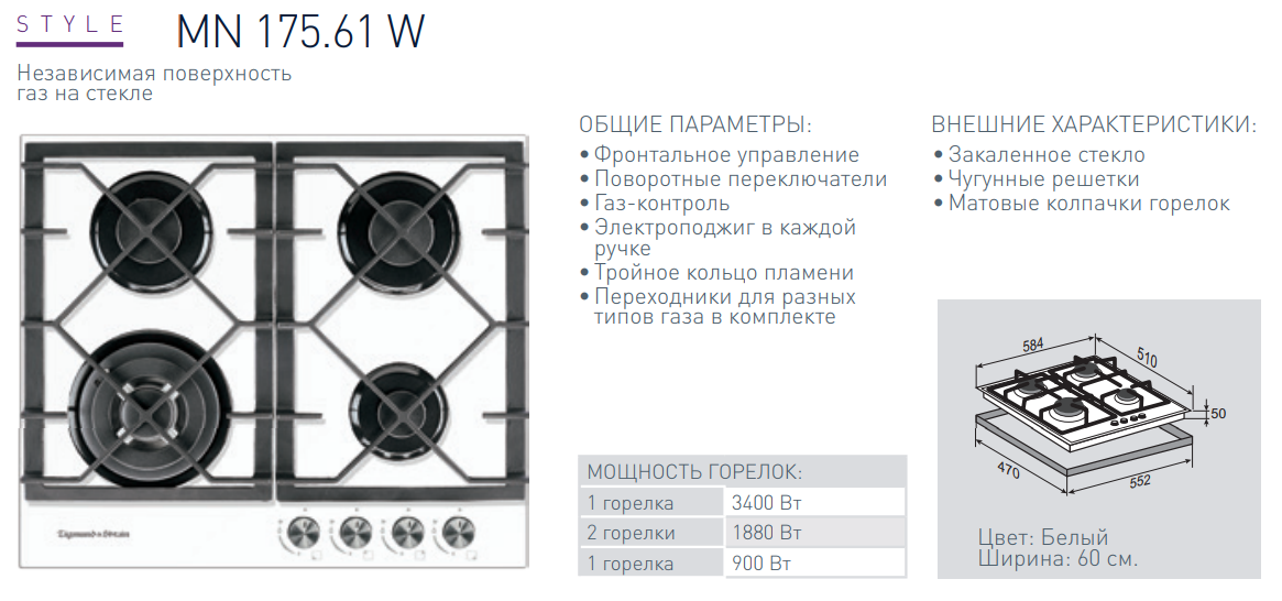 Семья и здоровое питание – основа нашей жизни. Мы хотим вдохновить Вас готовить дома и проводить больше времени в кругу семьи. Газовая варочная панель Zigmund-Shtain MN 175.61 W позволит воплотить в реальность все кулинарные фантазии. Если Вы еще не определились с моделью и ее необходимыми техническими характеристиками (функциями), профессиональная и честная консультация наших специалистов поможет не растеряться и сделать правильный выбор, подобрав то, что нужно именно Вам! Готовьте дома! Готовьте вместе! Готовьте вкусно с Zigmund-Shtain MN 175.61 W! | |