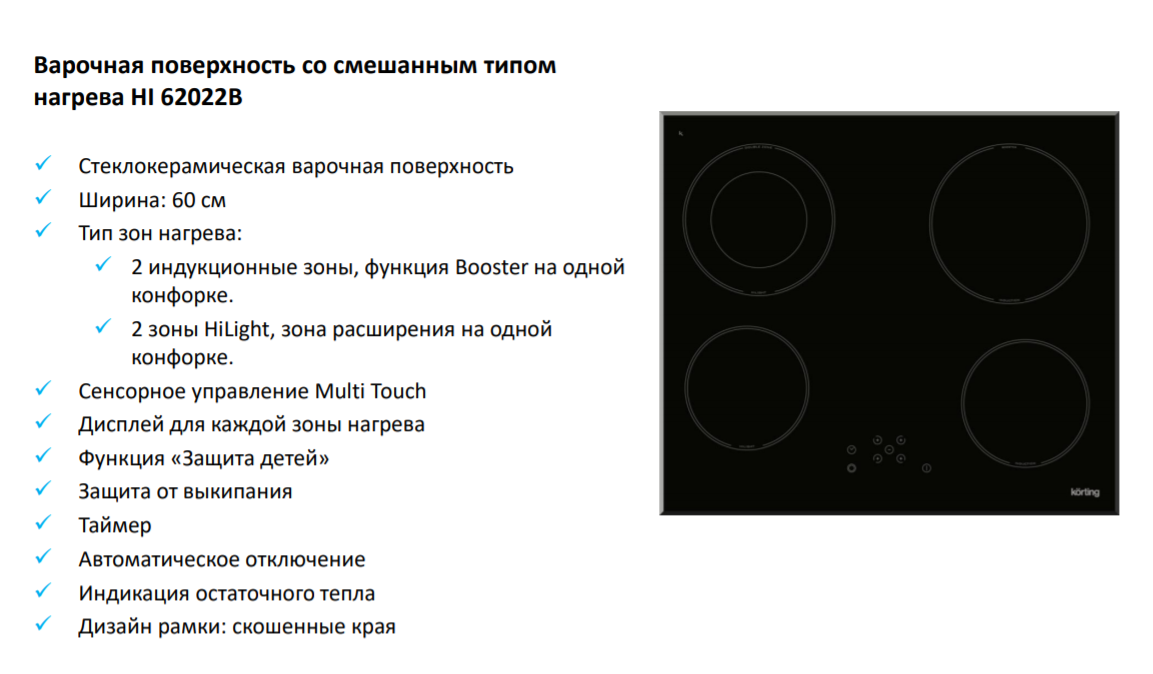 Комбинированная варочная панель Korting (Кёртинг) HI 62022 B