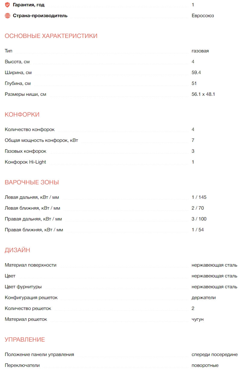 Тип расположения конфорок |