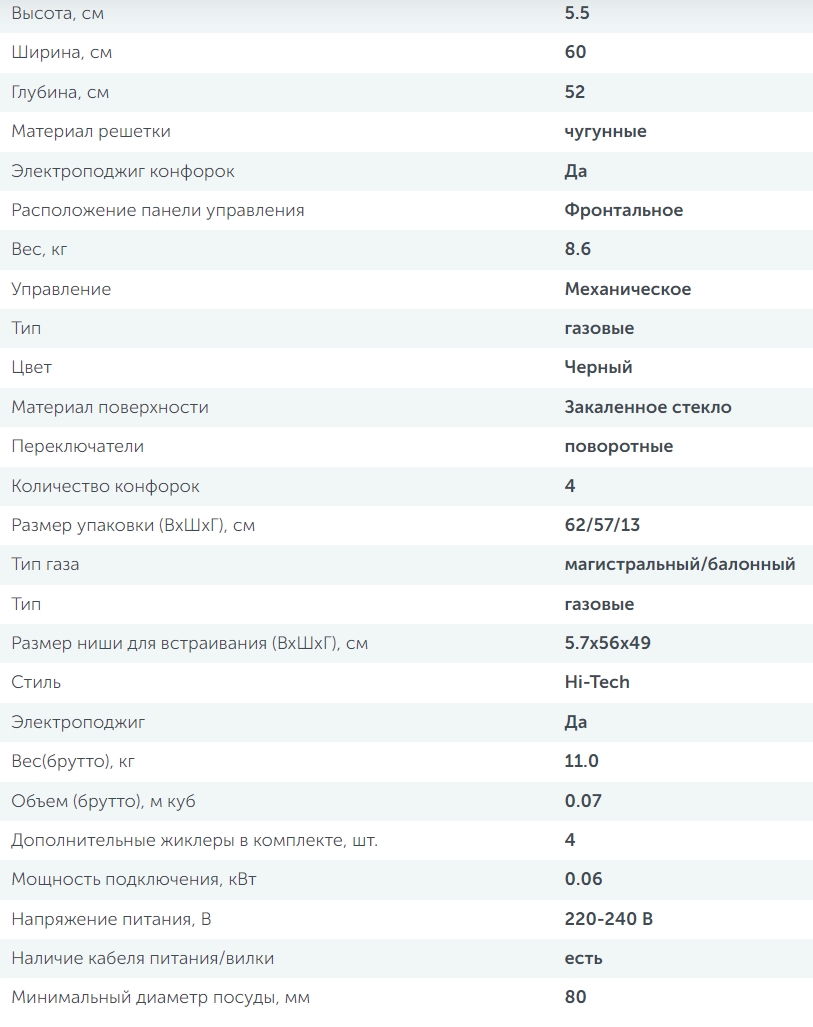 Кол-во газовых конфорок |