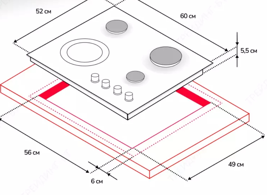 Тип расположения конфорок |