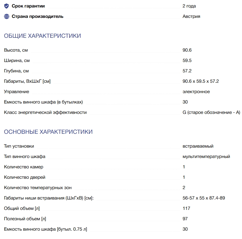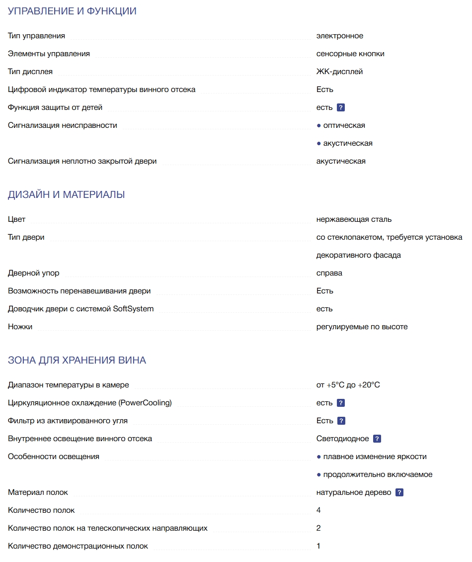 Емкость винного шкафа (в бутылках 0,75 л.) |