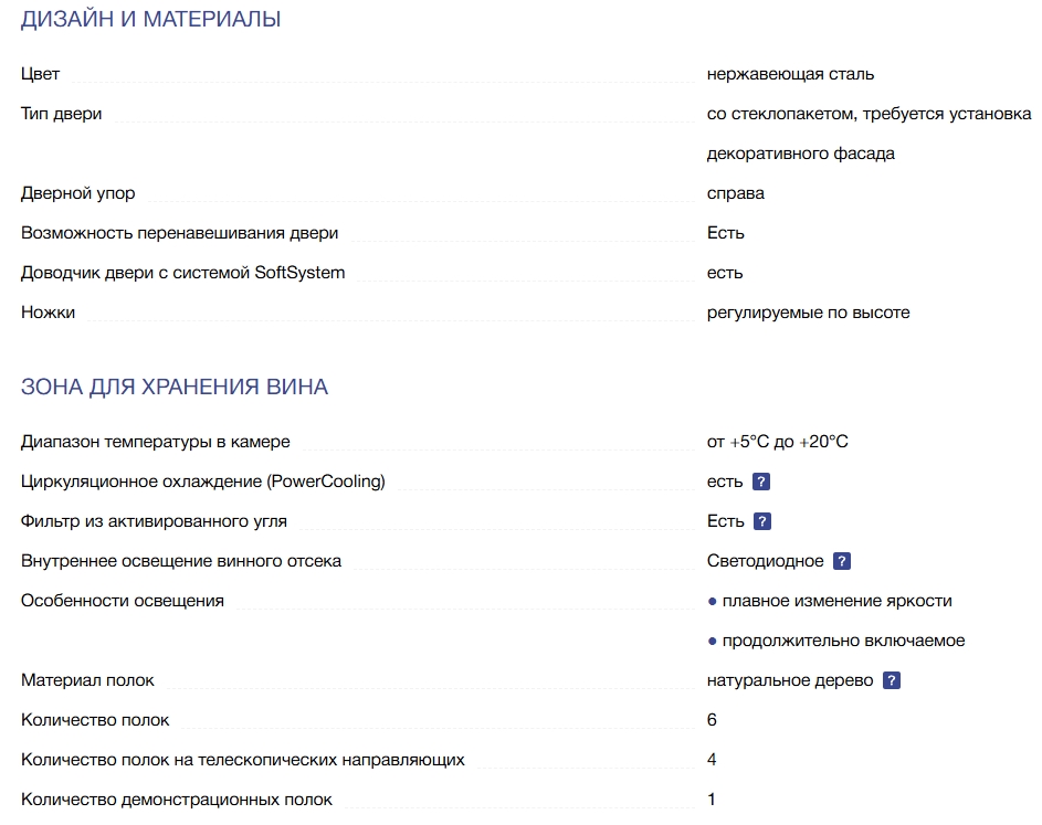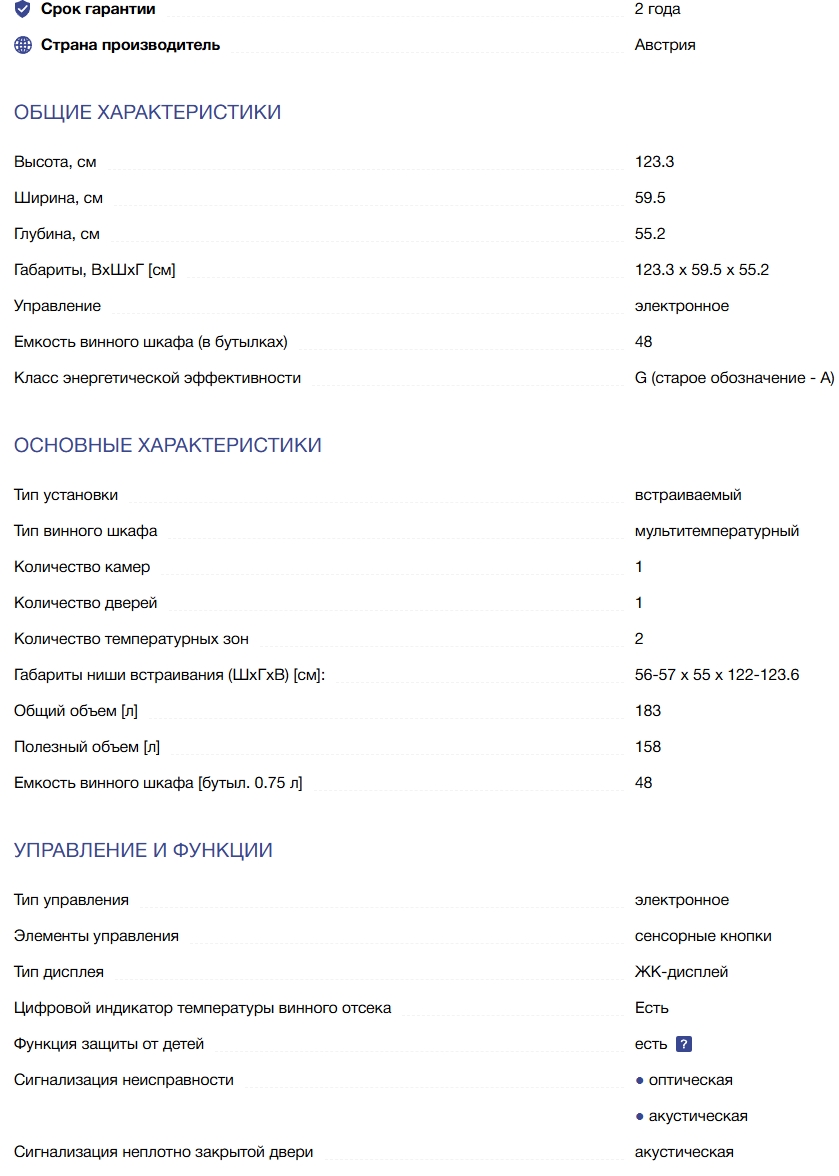Емкость винного шкафа (в бутылках 0,75 л.) |
