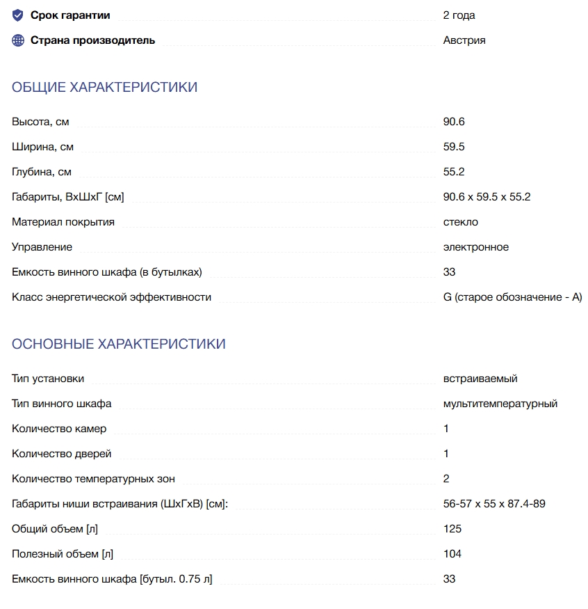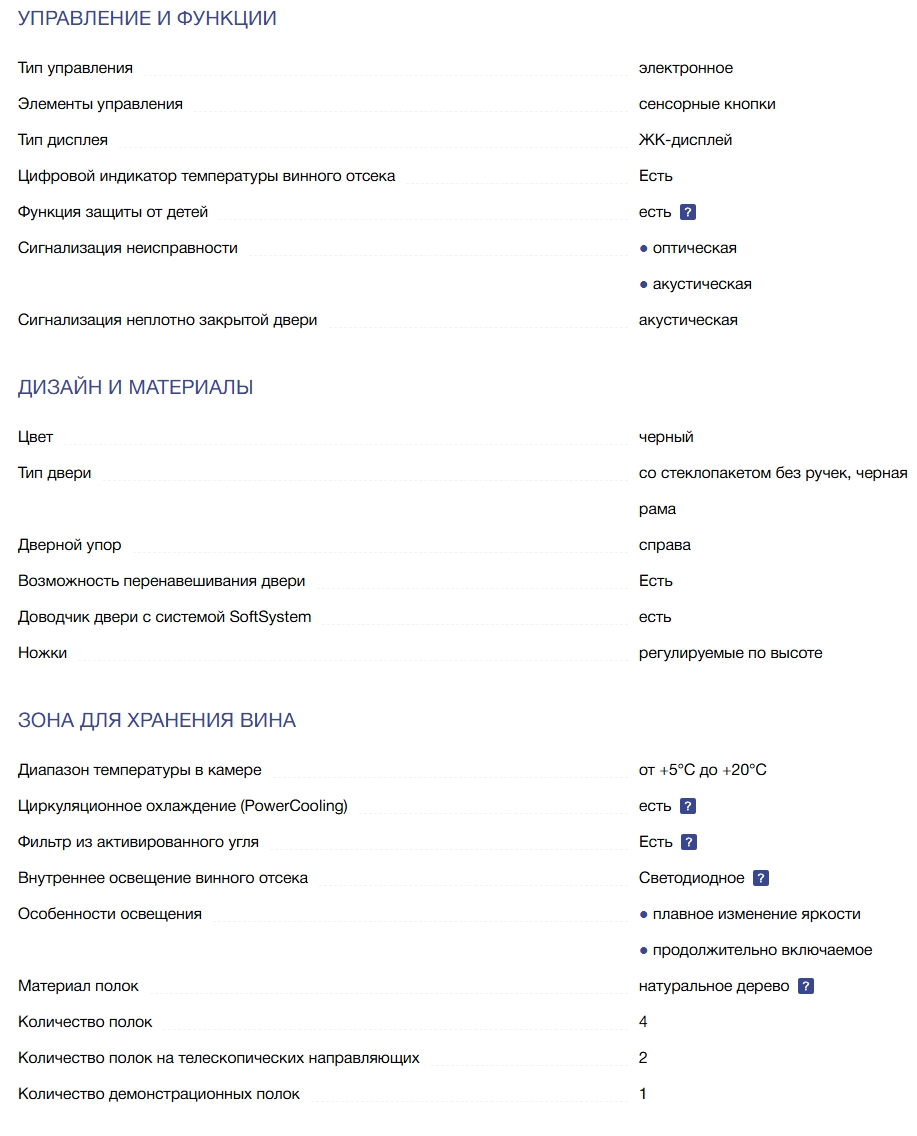 Емкость винного шкафа (в бутылках 0,75 л.) |