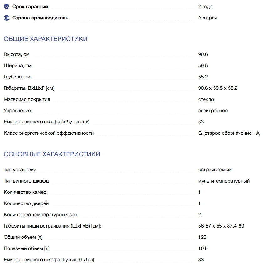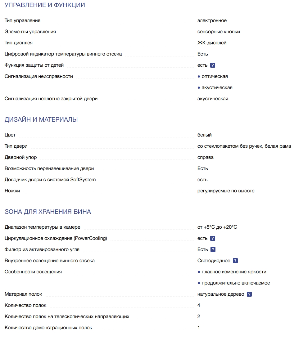 Емкость винного шкафа (в бутылках 0,75 л.) |