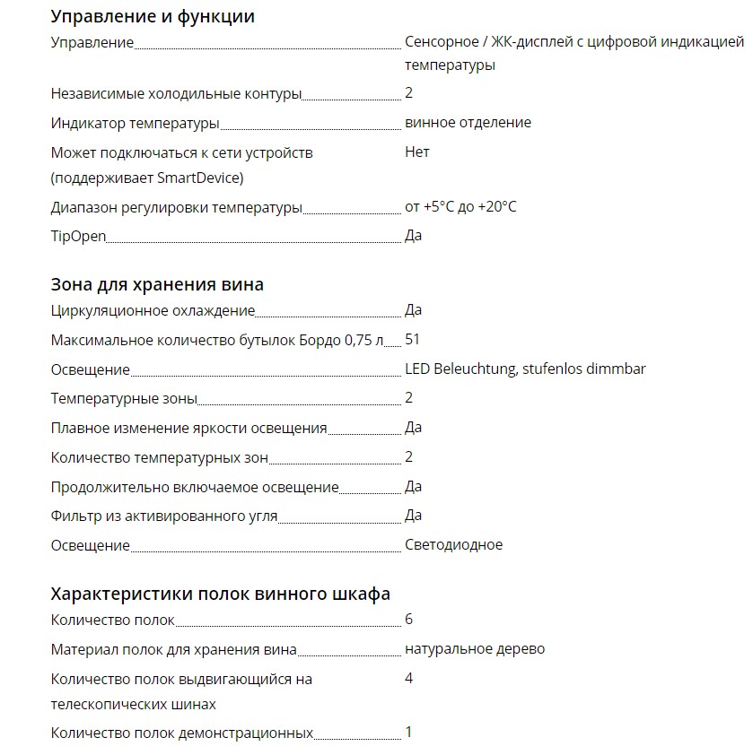 Емкость винного шкафа (в бутылках 0,75 л.) |