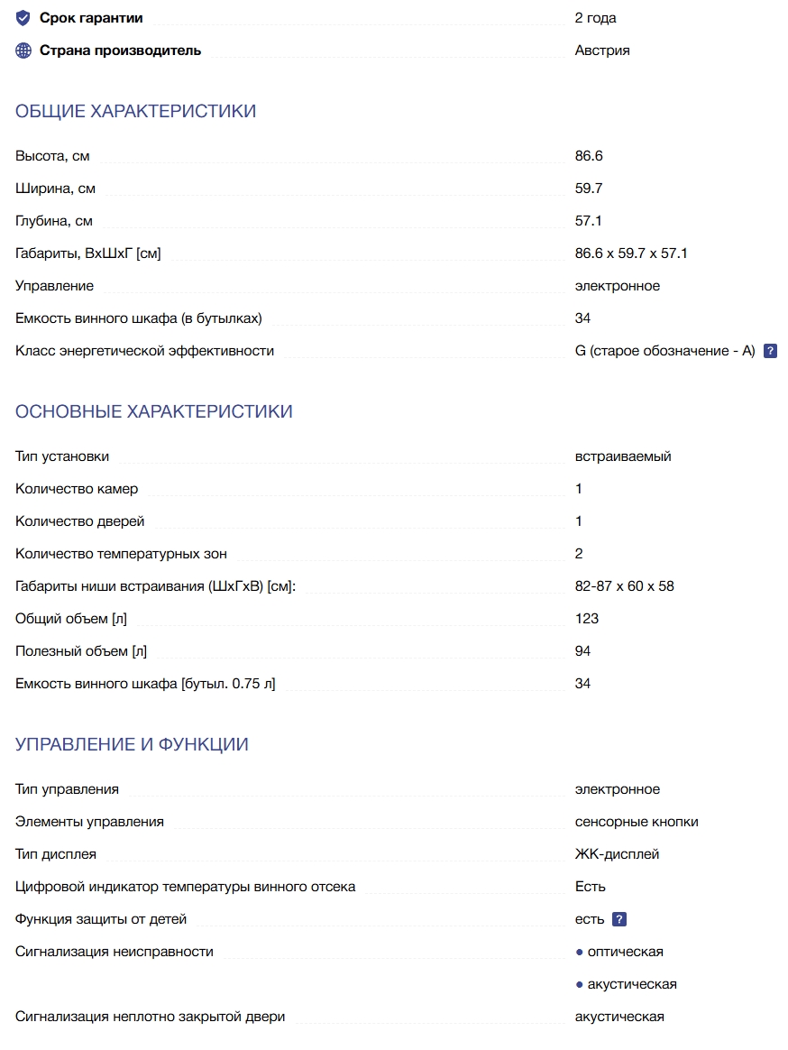 Емкость винного шкафа (в бутылках 0,75 л.) |