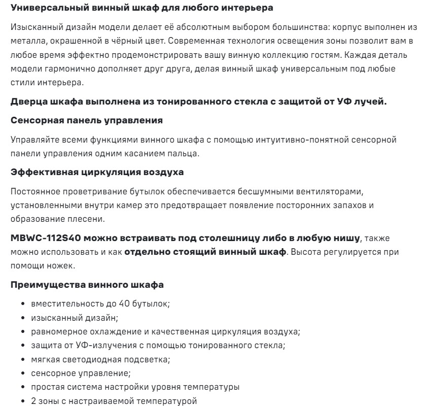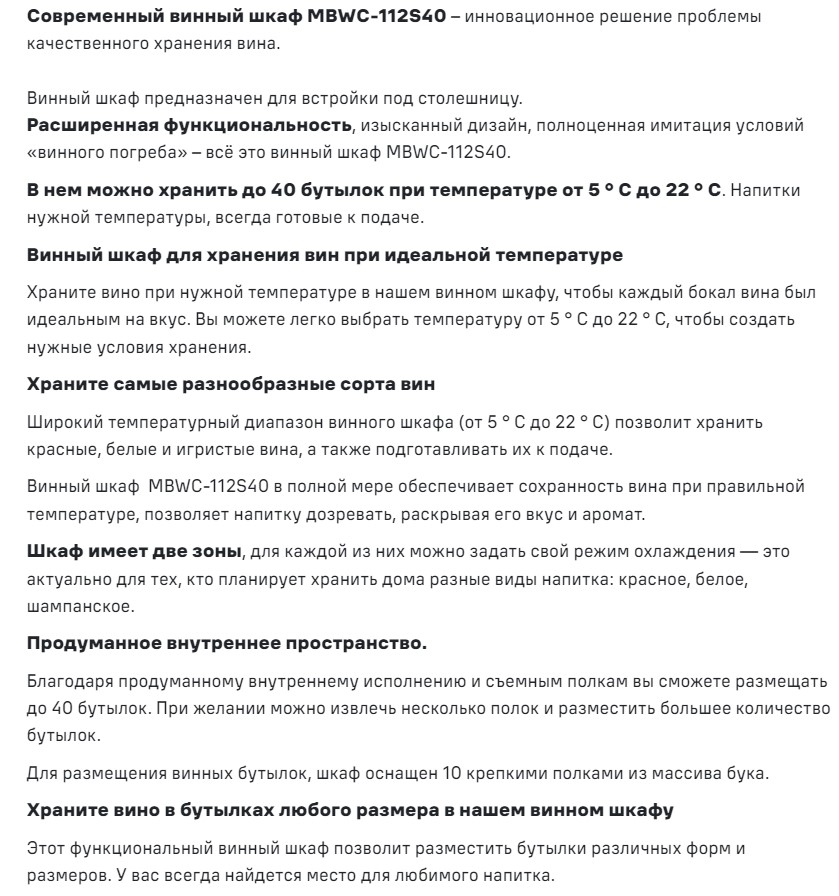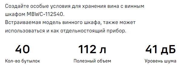 Встраиваемый винный шкаф MAUNFELD (Маунфилд) MBWC-112S40