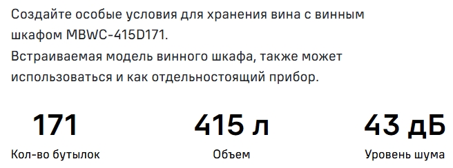 Встраиваемый винный шкаф MAUNFELD (Маунфилд) MBWC-415D171