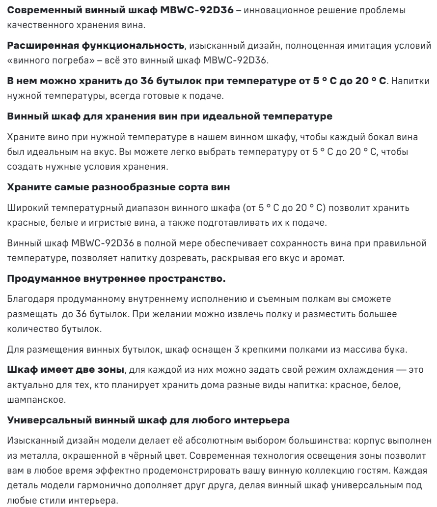 Встраиваемый винный шкаф MAUNFELD (Маунфилд) MBWC-92D36