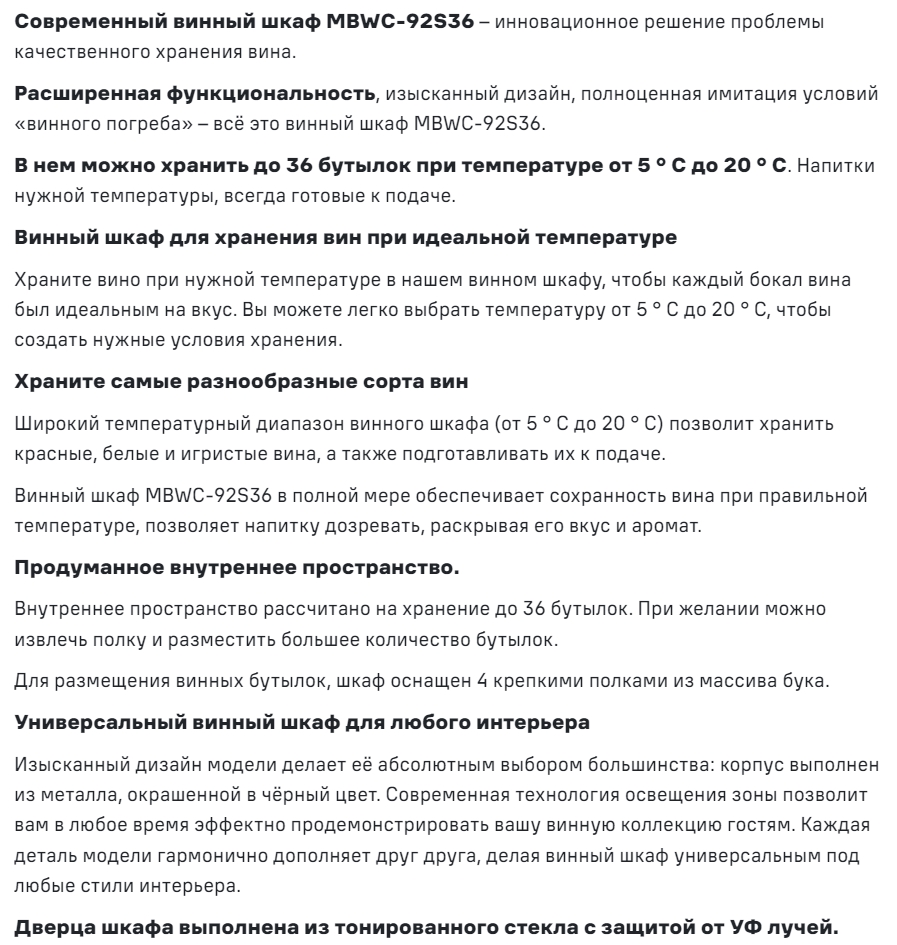Встраиваемый винный шкаф MAUNFELD (Маунфилд) MBWC-92S36