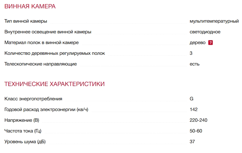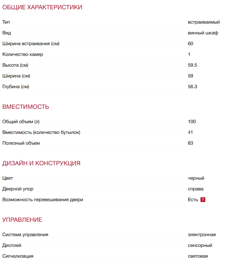 Емкость винного шкафа (в бутылках 0,75 л.) |