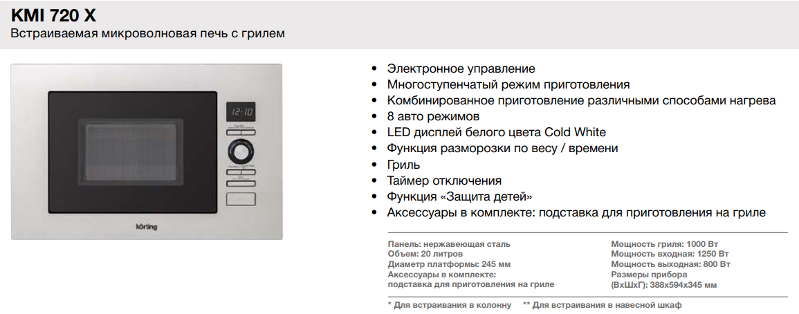 Микроволновая печь Korting (Кёртинг) KMI 720 X