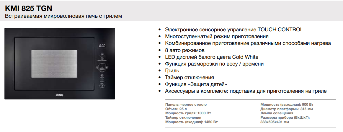 Микроволновая печь Korting (Кёртинг) KMI 825 TGN