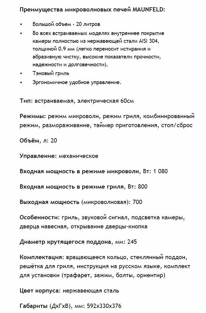 Встраиваемая микроволновая печь MAUNFELD (Маунфилд) JBMO.20.5S