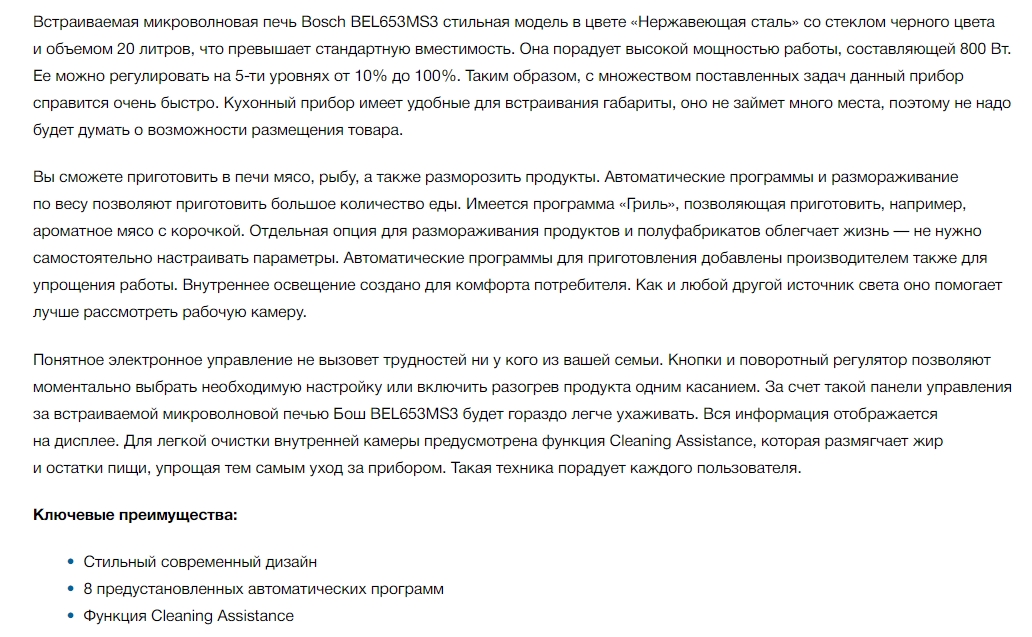 Встраиваемая микроволновая печь Bosch (Бош) BEL653MS3