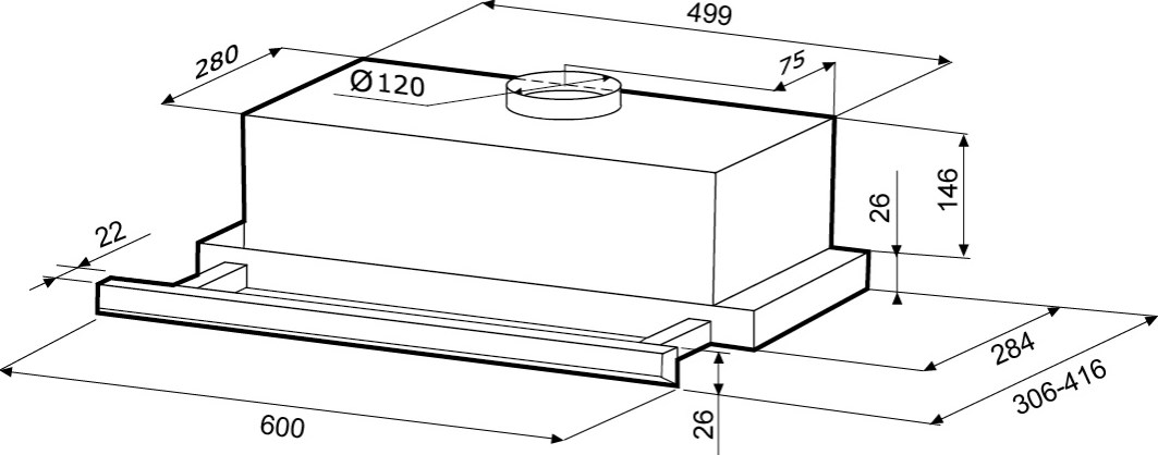 Встраиваемая вытяжка Krona (Крона) KAMILLA slim 600 black/inox (2 мотора)