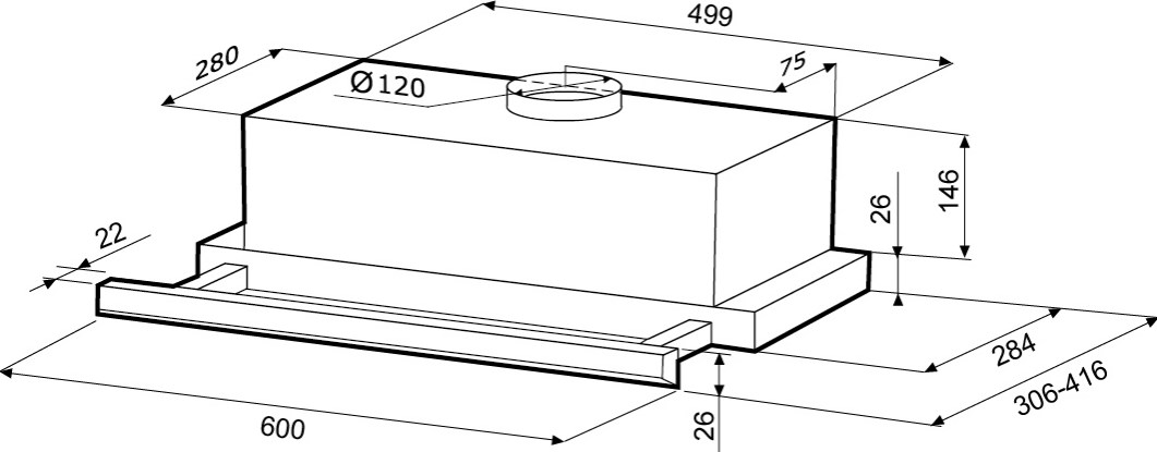 Встраиваемая вытяжка Krona (Крона) Kamilla slim 600 BK/IX (1 мотор)