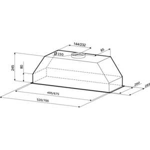 - Корпус вытяжки встраивается в шкаф или декоративный каминный купол над плитой