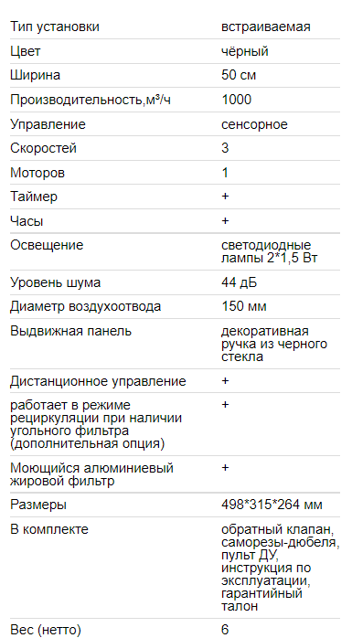 Встраиваемая вытяжка EXITEQ (Экзитег) EX - 1145 black