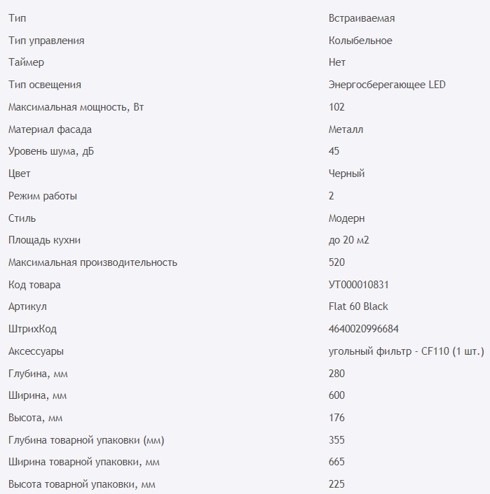 Встраиваемая вытяжка HOMSair (ХОМСэйр) FLAT 60 Черный
