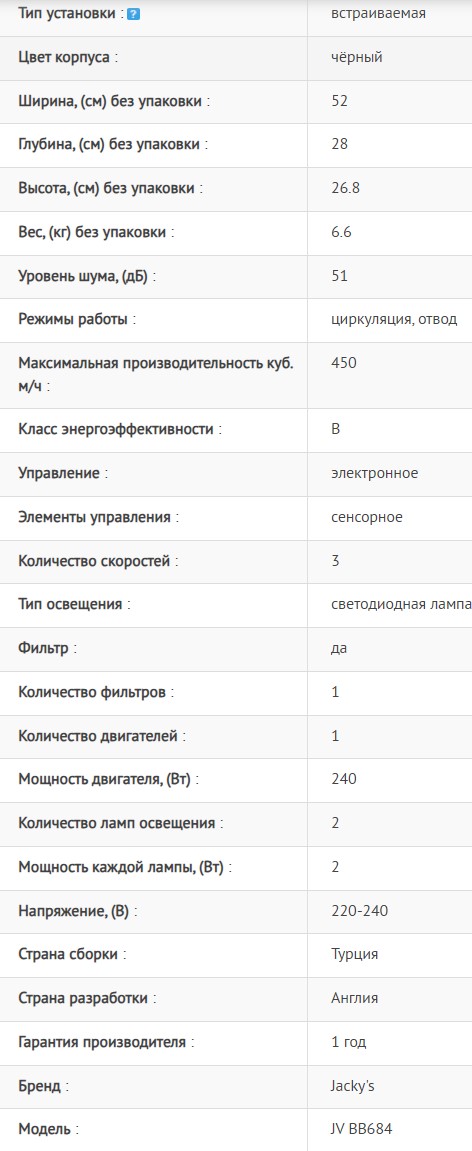Встраиваемая вытяжка Jacky's (Джекис) JV BB684