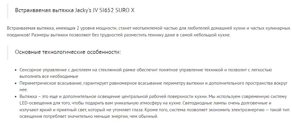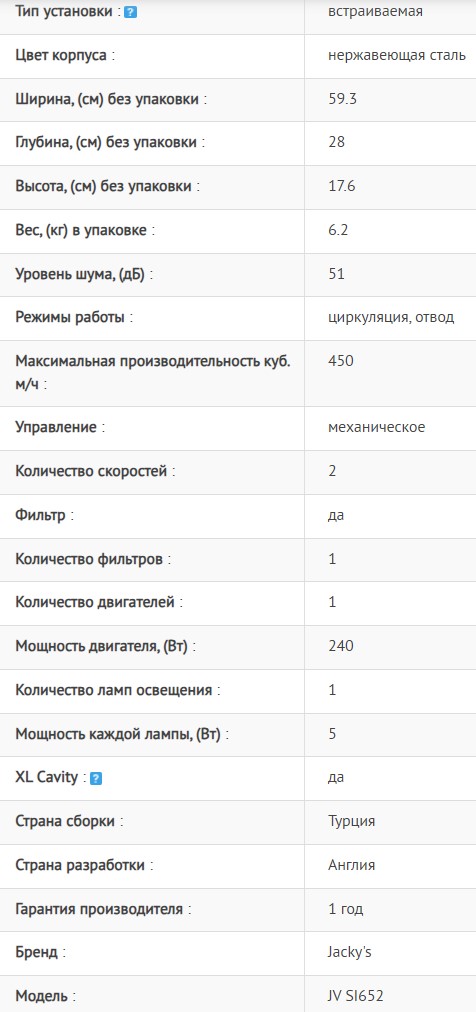 Встраиваемая вытяжка Jacky's (Джекис) JV SI652