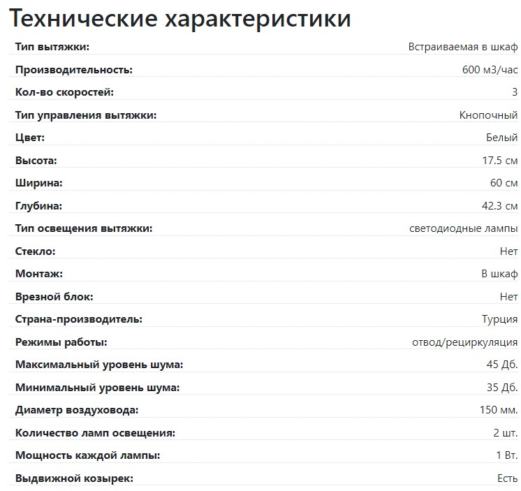 Встраиваемая вытяжка Lex (Лекс) HONVER 600 WHITE