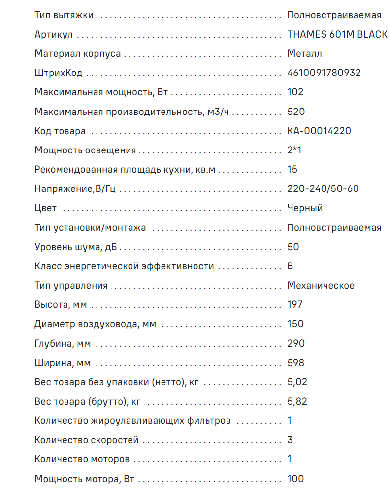 Встраиваемая вытяжка MAUNFELD (Маунфилд) THAMES 601M черный