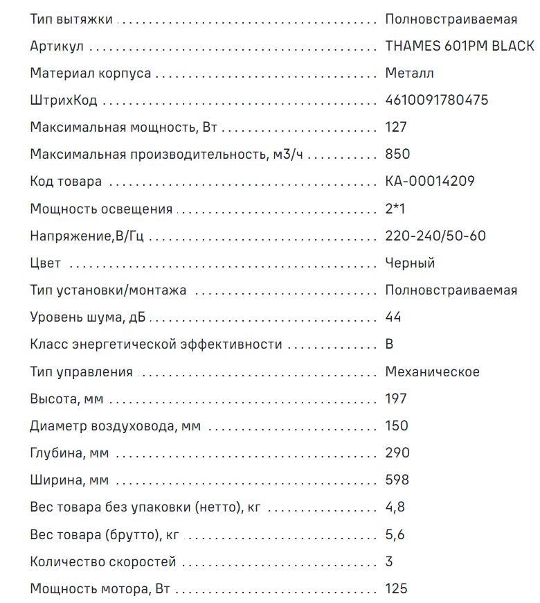 Встраиваемая вытяжка MAUNFELD (Маунфилд) THAMES 601PM черный