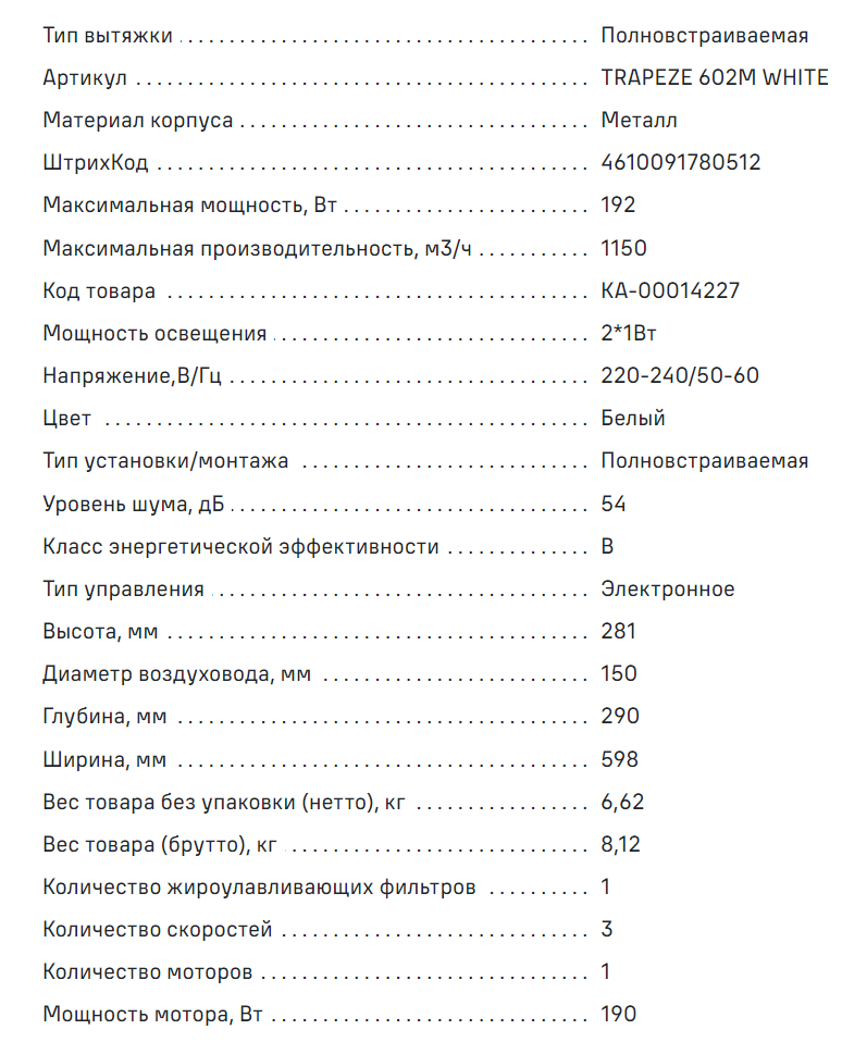 Встраиваемая вытяжка MAUNFELD (Маунфилд) TRAPEZE 602M белый
