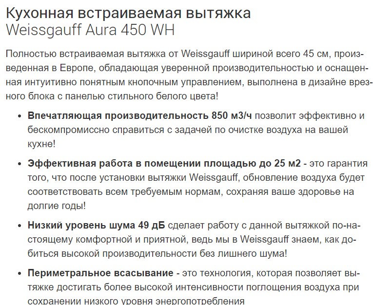 Встраиваемая вытяжка Weissgauff (Вайсгауф) Aura 450 WH