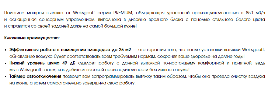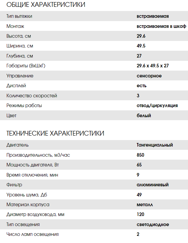 Встраиваемая вытяжка Weissgauff (Вайсгауф) Aura 850 WH