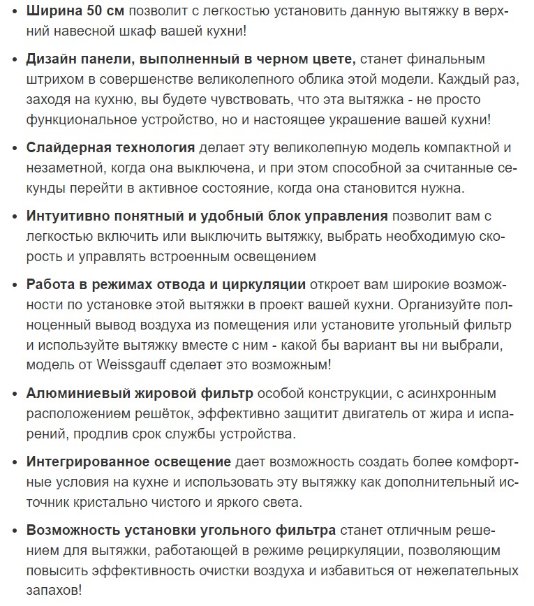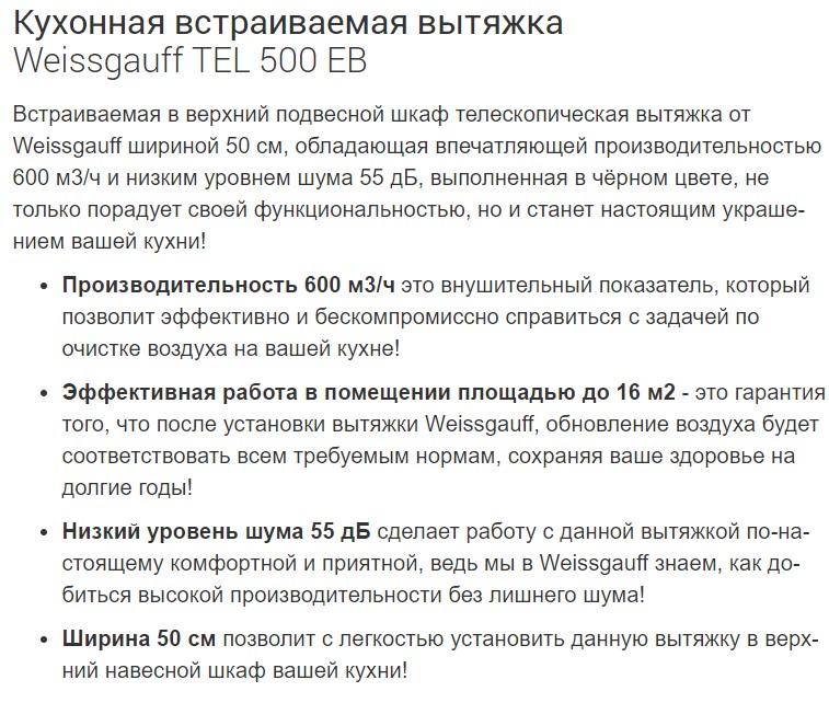 Встраиваемая вытяжка Weissgauff (Вайсгауф) TEL 500 EB